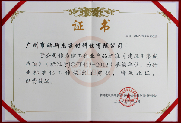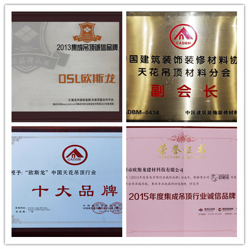 歐斯龍以品質(zhì)為核心,是高邊雙扣的倡導(dǎo)者,絕不使用再生鋁。率行業(yè)之先,通過(guò)ISO9001、2000國(guó)際質(zhì)量體系吊頂,并榮獲中國(guó)吊頂行業(yè)十大公認(rèn)品牌、家裝五大品牌、工裝十大品牌、中國(guó)優(yōu)秀綠色環(huán)保產(chǎn)品,中國(guó)行業(yè)質(zhì)量?jī)?yōu)秀產(chǎn)品等榮譽(yù),是中國(guó)建筑協(xié)會(huì)推薦產(chǎn)品及天花吊頂材料分會(huì)副會(huì)長(zhǎng)單位。