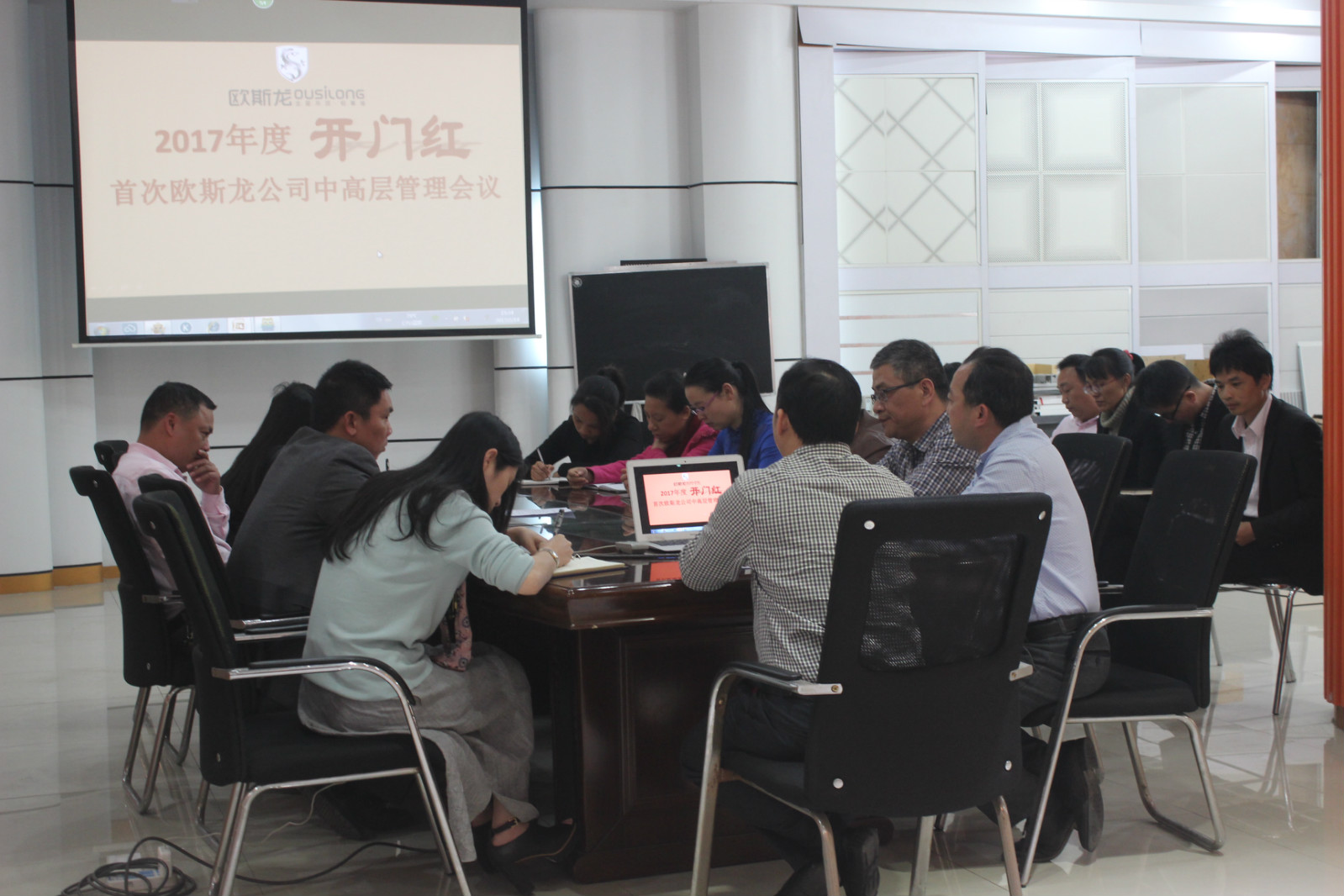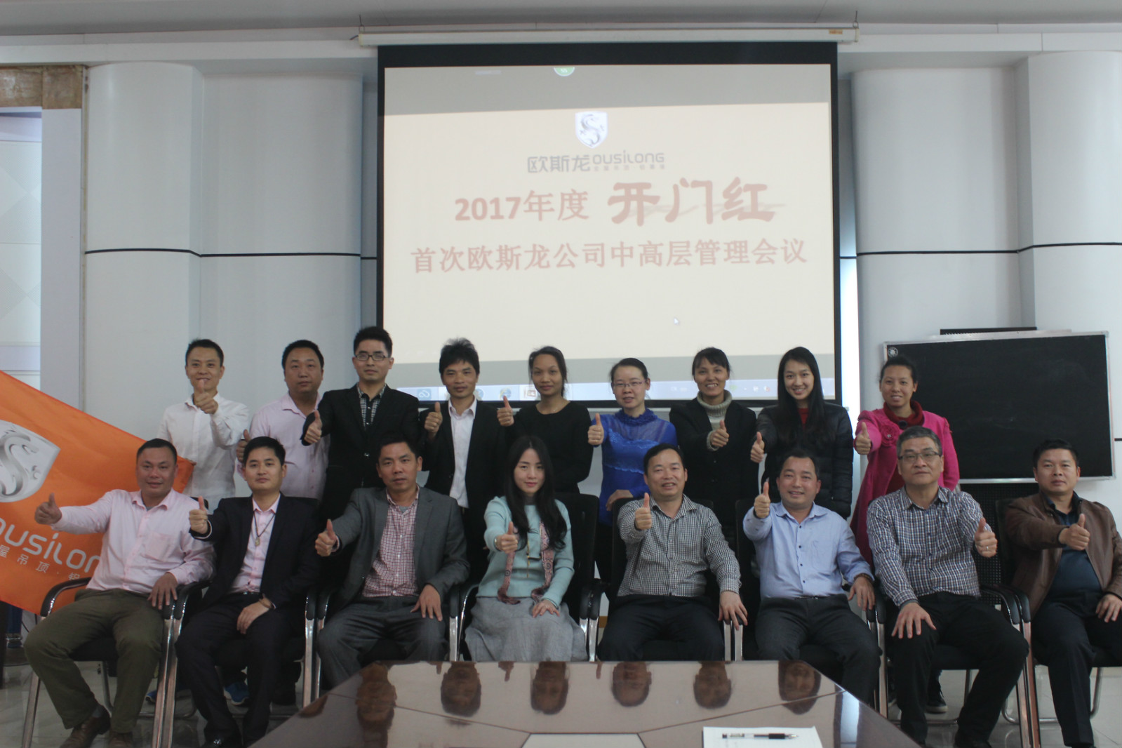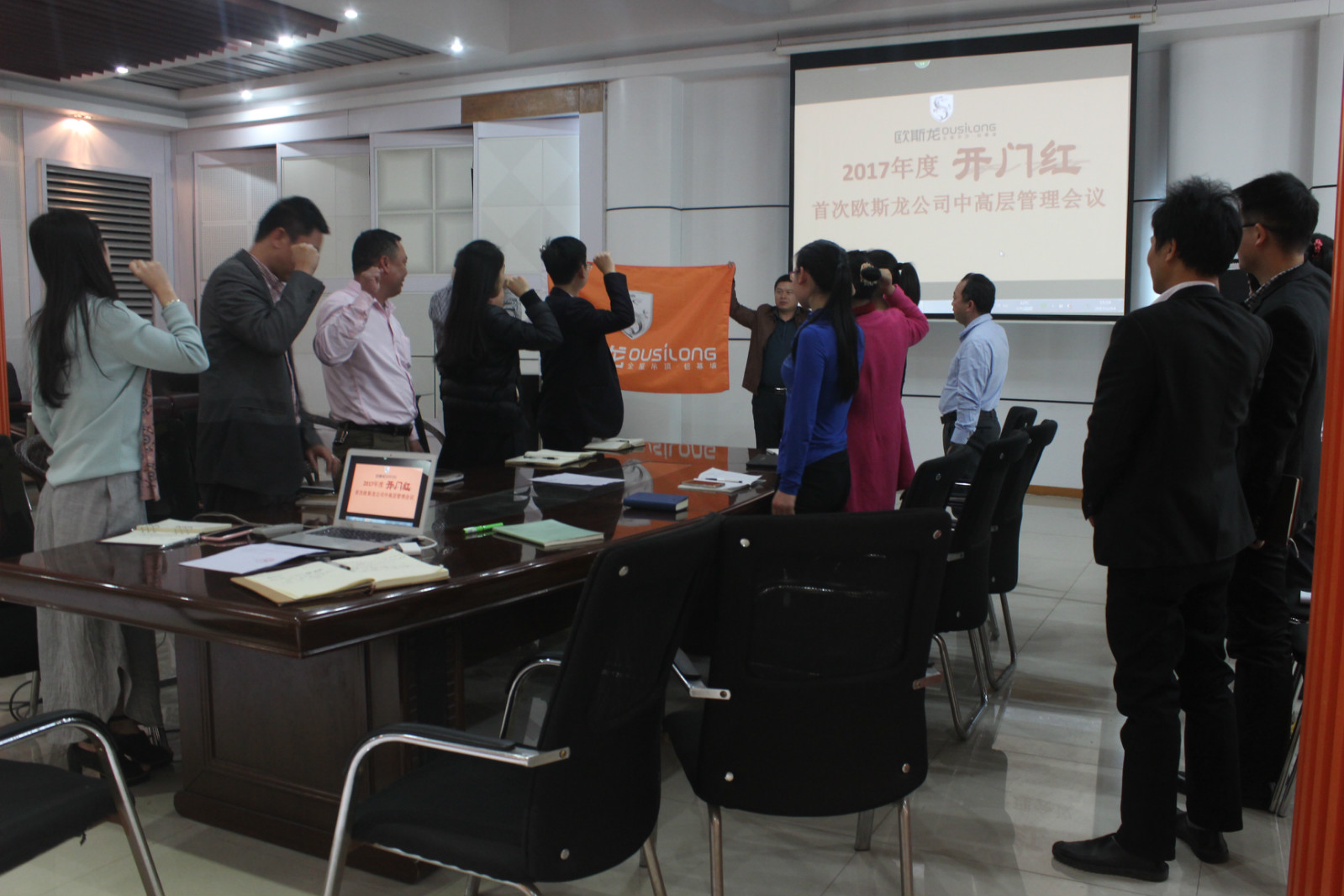 新的一年,新的開(kāi)始,歐斯龍定必以一個(gè)全新的面貌傲視市場(chǎng)!自身要求的提升、自身產(chǎn)品的更新都必將閃耀市場(chǎng)。歐斯龍2017年“開(kāi)門(mén)紅”會(huì)議于一片慷慨激昂的宣誓聲中完滿結(jié)束。