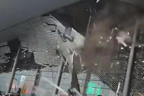 據多名網友發(fā)布視頻顯示,3月4日下午,南昌昌北國際機場T2航站樓一處頂部裝飾材料整體脫落,墮向地面,多名網友實拍現場畫面堪比好萊塢大片。從昌北國際機場獲悉,4日15時30分,機場突遇大風天氣,陣風超30米/秒,T2航站樓入口區(qū)域部分屋檐裝飾材料被大風吹下,現場無人員傷亡,目前昌北國際機場已對T2航站樓出發(fā)廳出入口進行管控,對現場進行清理,進出港旅客改為由到達廳進入航站樓。昌北國際機場稱,所有航班、車輛在大風期間停止運行,未受到影響,目前機場已恢復航班運行保障。