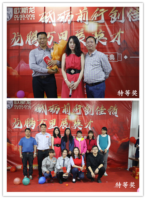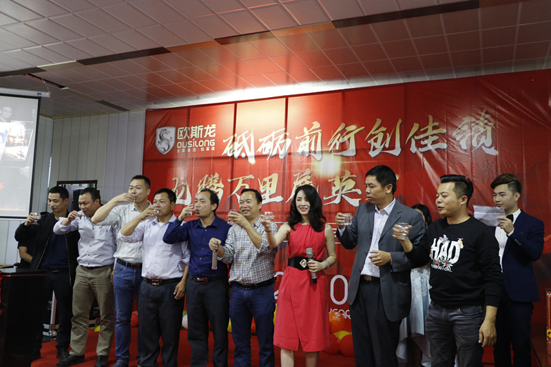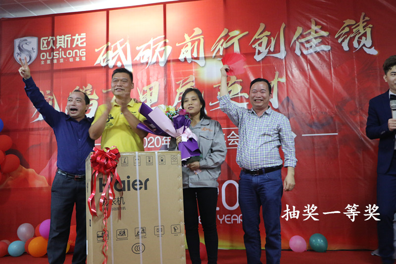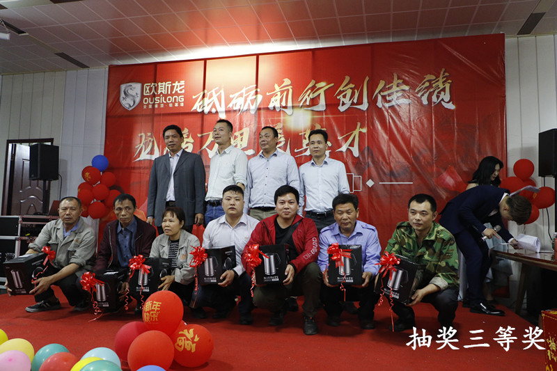 亮劍十幾載,榮譽(yù)滿天下。歐斯龍自成立以來始終以“改善人類居住環(huán)境”為己任,以人文為基礎(chǔ),以“設(shè)計(jì)人性化產(chǎn)品”為理念,創(chuàng)造出健康環(huán)保的人文空間,為數(shù)千萬用戶提供了吊頂?shù)恼w居家解決方案,深受廣大消費(fèi)者的認(rèn)可和青睞及行業(yè)好評(píng)?!?/p> 2020年1月4日廣州市歐斯龍建材科技有限公司“砥礪前行創(chuàng)佳績(jī),龍騰萬里展英才”年度盛典完滿舉行。公司領(lǐng)導(dǎo)與員工歡聚于廣州市南沙區(qū)歐斯龍工業(yè)園總部食堂,共同迎接2020年的到來。 公司總經(jīng)理陳明珍首先致新年祝詞,陳總經(jīng)理總結(jié)了過去一年歐斯龍公司所取得的成績(jī),對(duì)全體員工為公司發(fā)展所做出的努力表示肯定與感謝,對(duì)公司2020年的經(jīng)營發(fā)展提出了目標(biāo),并向全體員工致以節(jié)日的問候和祝福。 隨后,在梁振杰董事長的帶領(lǐng)下一眾領(lǐng)導(dǎo)班子上臺(tái)與全體歐斯龍成員高舉酒杯感恩過去、著眼現(xiàn)在、憧憬將來共同再接再厲、不斷進(jìn)取,再創(chuàng)輝煌。 在晚會(huì)開始之際,歐斯龍?zhí)貏e鳴謝到場(chǎng)參加宴會(huì)的一眾合作伙伴及領(lǐng)導(dǎo)。歐斯龍?jiān)诟魑坏拇罅χС窒卤貙⒗^往開來,更上一層樓。