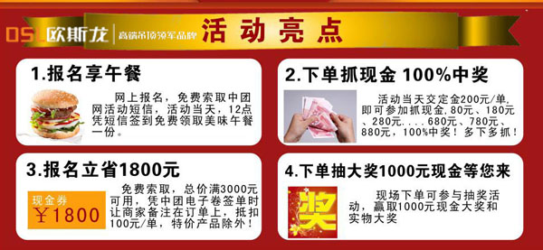 2.訂單折上折(成交價(jià)上再打折),歐斯龍攜手各大家居品牌,3單98折,5單97折,7單96折,只要你下單夠多我們的折扣就敢夠低。