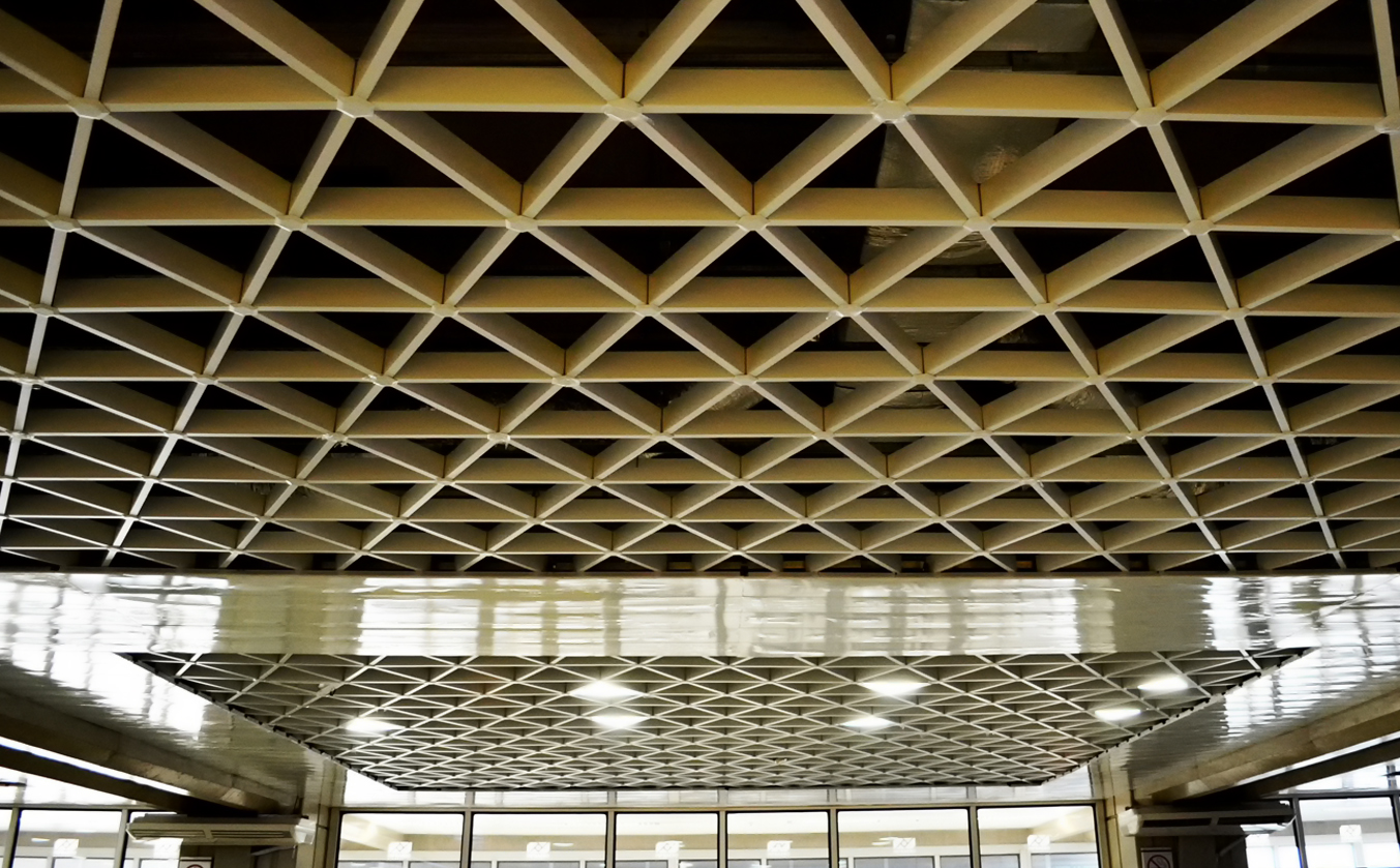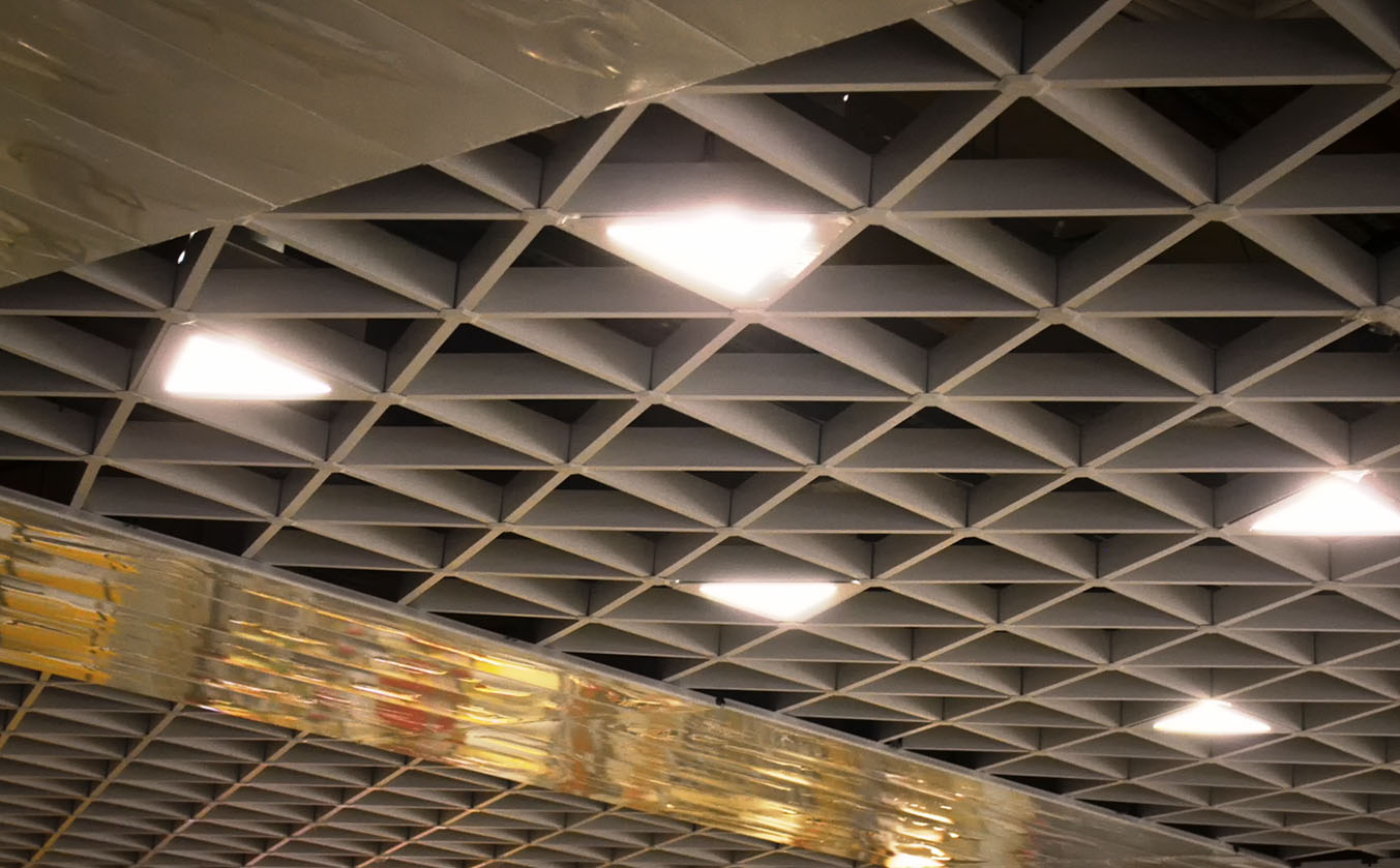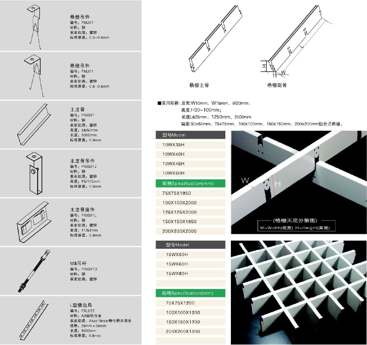 格柵天花系列主、副龍骨縱橫分布,層次分明,立體感強(qiáng),造型新穎,防火防潮,通風(fēng)好。告別傳統(tǒng)型裝拆困難、龍骨變形的缺點(diǎn)。深受裝修從業(yè)人員歡迎。組合式格柵天花是一種開放式的網(wǎng)格設(shè)計(jì),整個(gè)頂部網(wǎng)格主要由主框骨、副框骨、次框骨、中間上骨和中間下骨組合而成。600*600的小方格可以獨(dú)立拆裝。對(duì)于頂部有空調(diào)、消防和其他管及電器維護(hù)非常方便。組合式格柵天花是主、副龍骨縱橫分布、層次分明、材質(zhì)輕巧、外觀簡(jiǎn)潔、能舒緩由于封閉式造成的壓抑感,便其更能顯示斜視所營(yíng)造的不同風(fēng)格。