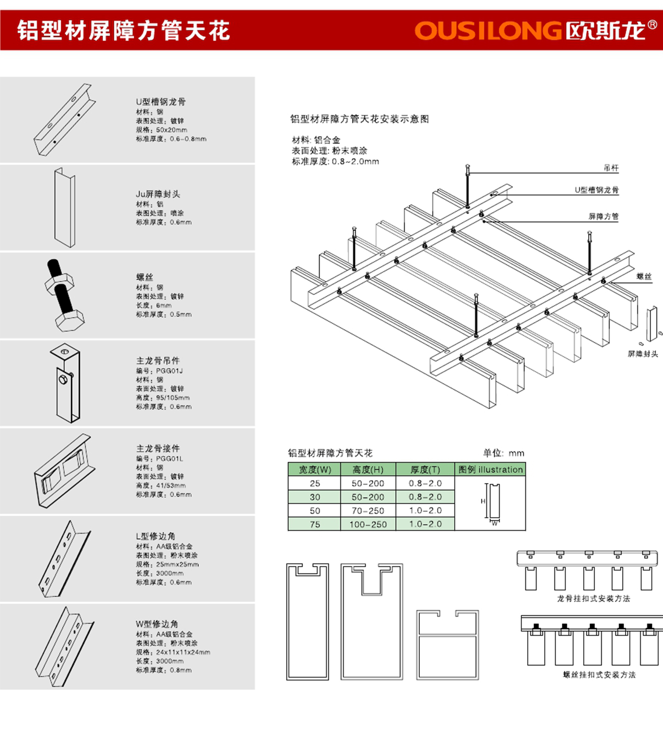 歐斯龍屏障方通天花適用范圍:城市標(biāo)志建筑,會所,大酒店,博物館,體育館,文化中心,國際會展,火車站,地鐵,機(jī)場等建筑天花吊頂、隔斷、外墻及裝飾門面。